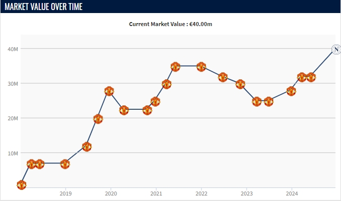 九游会j9官网真人游戏第一品牌麦克托米奈去年夏窗从曼联加盟那不勒斯,转会费3000万欧,加盟时德转身价3200万欧,本赛季涨到了4000万欧,创生涯新高。本赛季,小麦为那不勒斯出战32场比赛,贡献12球4助攻,其中意甲30场11球4助攻,是那不勒斯争冠的关键球员。
