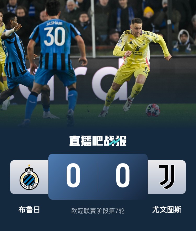 j9九游会老哥俱乐部交流01月22日讯 今天凌晨的欧冠比赛,尤文图斯0-0战平布鲁日,成为今天凌晨唯一一场没进球的欧冠比赛。